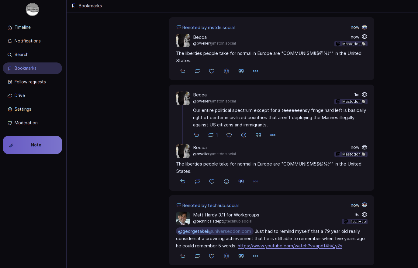 When you switch from timeline - global to bookmarks, it is (sometimes) flooded with global notes.